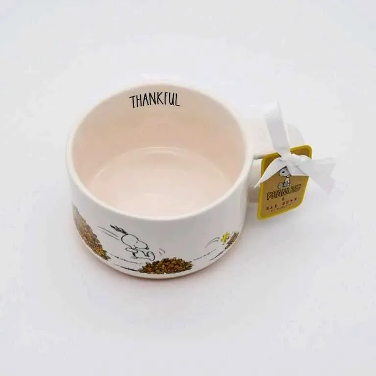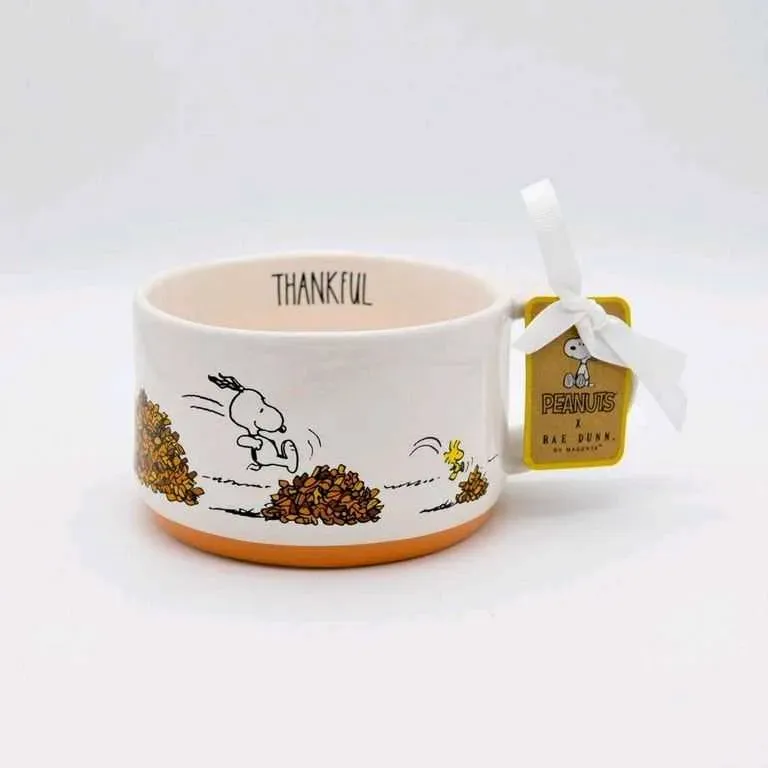Agrega calidez y diversión a tus bebidas con esta taza de sopa Rae Dunn Peanuts, que muestra a Snoopy saltando entre hojas otoñales 🍁. Con la palabra “THANKFUL” en el interior, cada sorbo te recordará agradecer los pequeños momentos del día 💛.