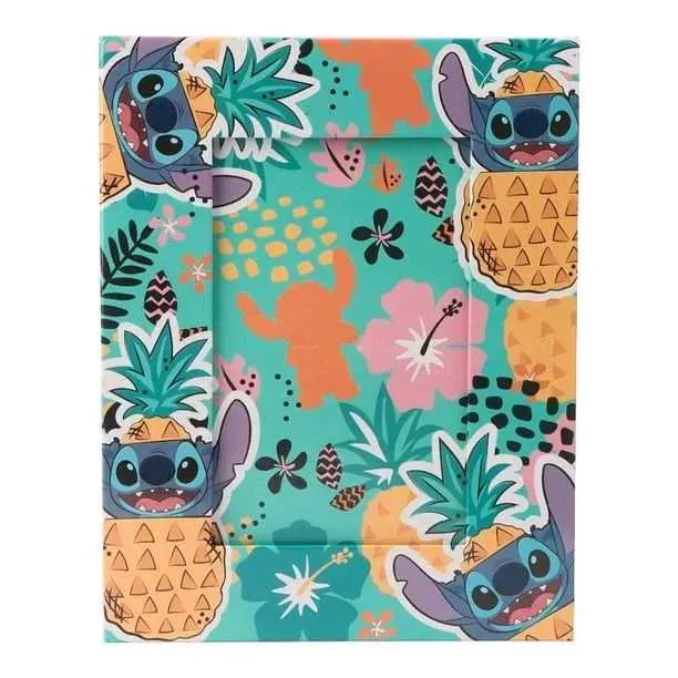 Este encantador marco para fotos, diseñado para imágenes de 10x15, ofrece un toque de color y diversión con su diseño de Stitch multicolor en una base de plástico resistente.